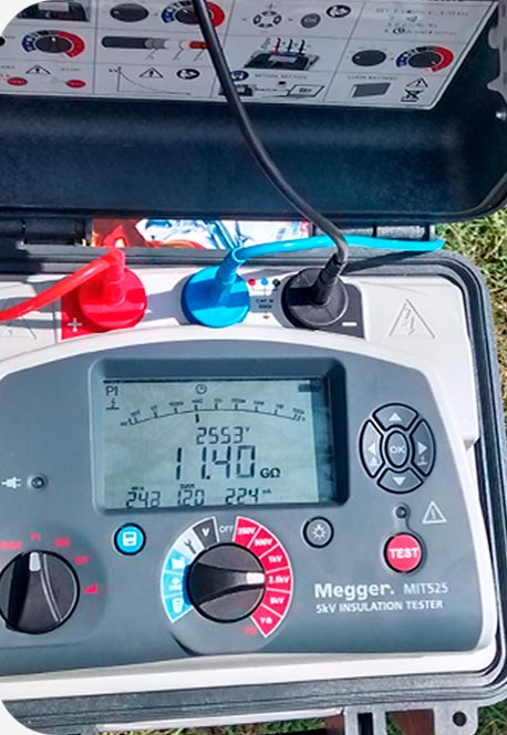 Pruebas eléctricas (resistencia de aislamiento, resistencia de contactos, relación de transformación, VLF, factor de potencia, descargas parciales, resistencia óhmica, D.F.R, termografía, tiempos de operación y simultaneidad).